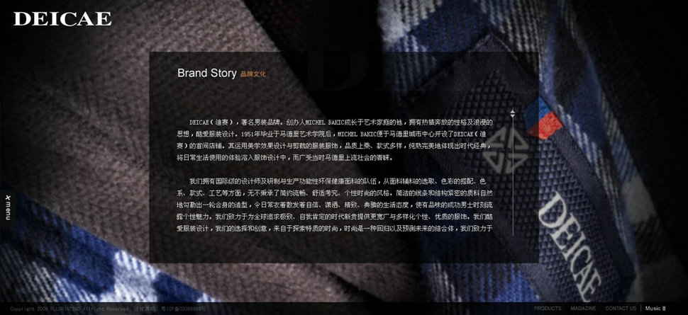 迪賽服飾 廣州市現科信息科技有限公司(現科網絡)成立于2008年,是廣州市最早從事企業網站建設及推廣服務的公司。主營業務:網站建設、企業軟件開發、H5響應式網站制作、營銷型網站、企業郵箱、微信小程序開發。業務咨詢:15915781289。廣州市宏瀛貿易有限公司是一家實力雄厚、具有多年國際品牌服飾經營推廣經驗的公司。 訪問此網站