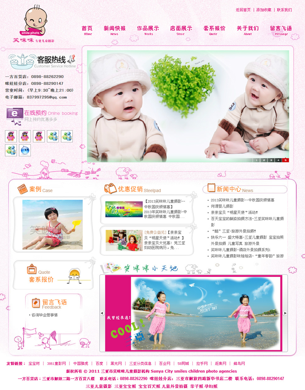 三亞市笑咪咪兒童攝影機構 廣州市現科信息科技有限公司(現科網絡)成立于2008年,是廣州市最早從事企業網站建設及推廣服務的公司。主營業務:網站建設、企業軟件開發、H5響應式網站制作、營銷型網站、企業郵箱、微信小程序開發。業務咨詢:15915781289。三亞專業兒童攝影笑咪咪兒童影樓誕生于2009年1月,位于交通便利,時尚繁華的解放一路一方百貨 訪問此網站