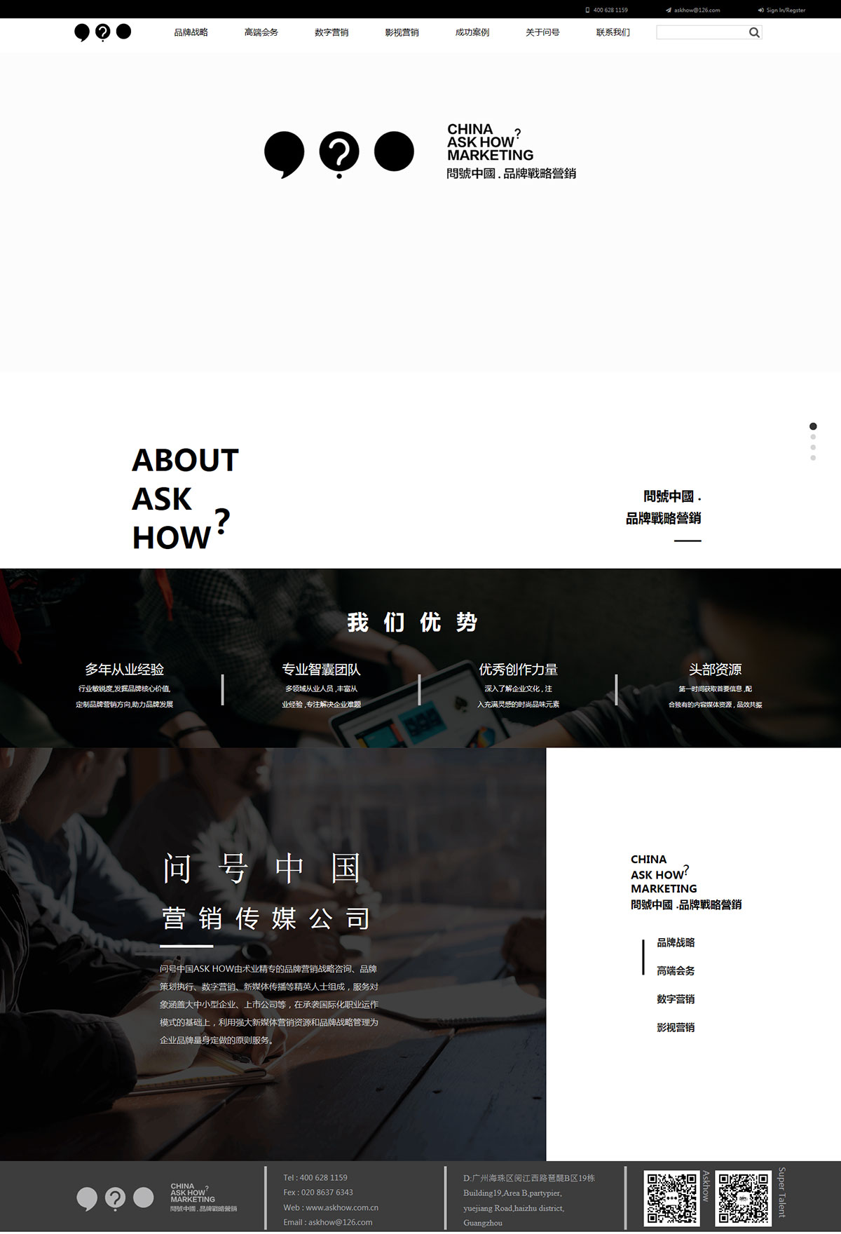 問號中國 廣州市現科信息科技有限公司(現科網絡)成立于2008年,是廣州市最早從事企業網站建設及推廣服務的公司。主營業務:網站建設、企業軟件開發、H5響應式網站制作、營銷型網站、企業郵箱、微信小程序開發。業務咨詢:15915781289。問號于2006年成立于廣州,十多年以來,問號一直致力于為所有謀求長遠發展的大中小型企業,提供品牌戰略咨詢,在承襲國際化職業運作模式的基礎上,利用強大新媒體營銷資源和品牌戰略管理為企業品牌量身定做的原則服務 訪問此網站