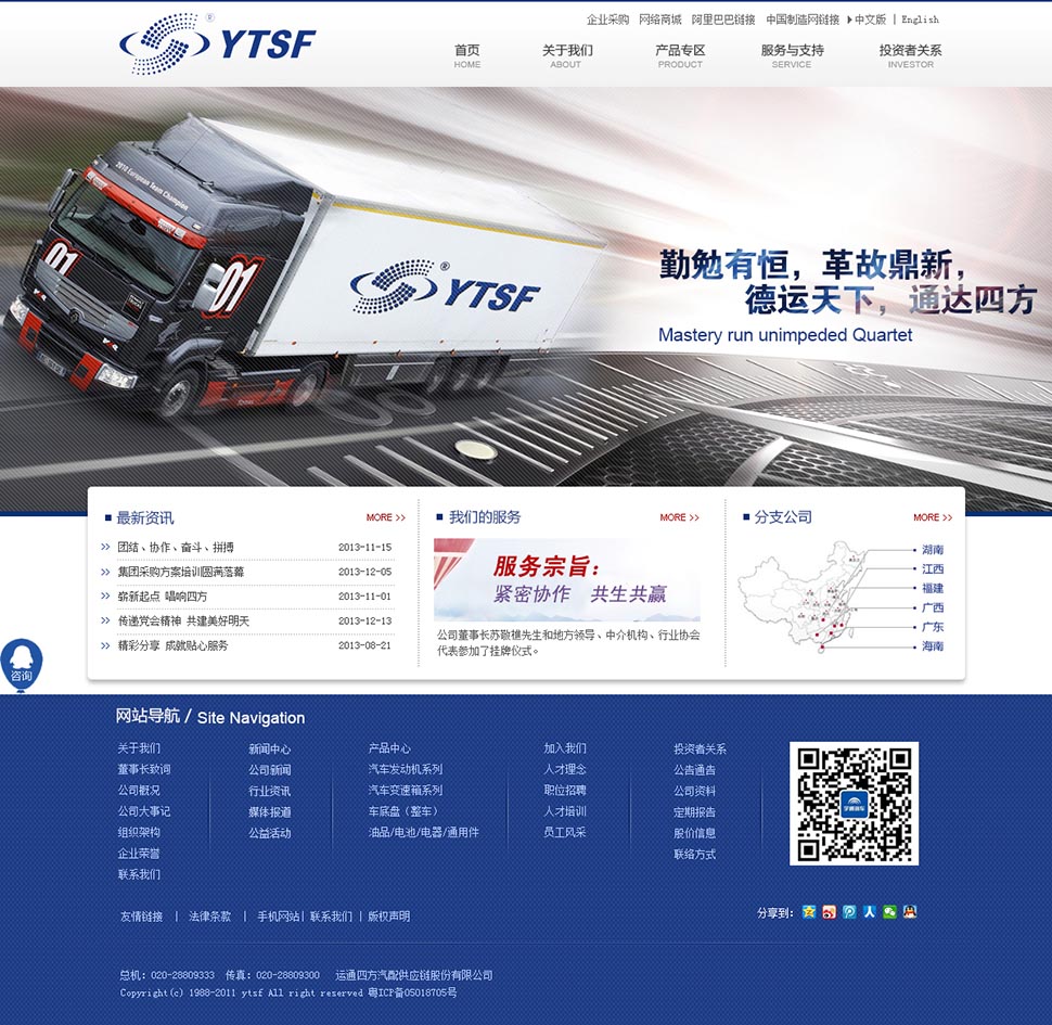 廣州市現科信息科技有限公司(現科網絡)成立于2008年,是廣州市最早從事企業網站建設及推廣服務的公司。主營業務:網站建設、企業軟件開發、H5響應式網站制作、營銷型網站、企業郵箱、微信小程序開發。業務咨詢:15915781289。運通四方汽配供應鏈股份有限公司,是中國最大的商用車配件渠道商之一。2014年6月9日,運通四方汽配供應鏈股份有限公司在全國中小企業股份轉讓系統掛牌成功。(證券簡稱“運通四方”證券代碼:830788),宣告中國后市場第一股成功登陸資本市場。手機網站:www.ytsf.com.cn/wap