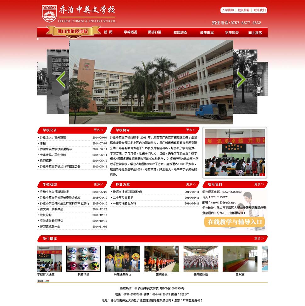 廣州市現科信息科技有限公司(現科網絡)成立于2008年,是廣州市最早從事企業網站建設及推廣服務的公司。主營業務:網站建設、企業軟件開發、H5響應式網站制作、營銷型網站、企業郵箱、微信小程序開發。業務咨詢:15915781289。喬治中英文學校始建于2003年,座落在廣佛交界穗鹽路之旁,是雅居樂雍景豪園洋宅小區內的配套學校,是廣州市瑪嘉莉教育發展有限公司(瑪嘉莉教育專注于3-15歲少兒智能訓練,培養孩子學習能力、學習方法、學習習慣,讓孩子們陽光、自信,快樂學習及生活!教學模式-采用多媒體感官配合互動式體驗教學。)投資建設的佛山市一所雙語教學學校。學校占地面積19872平方米,建筑面積11905平方米,校園內綠化覆蓋率達100%,綠樹成蔭,風景怡人,是莘莘學子成長的搖投。