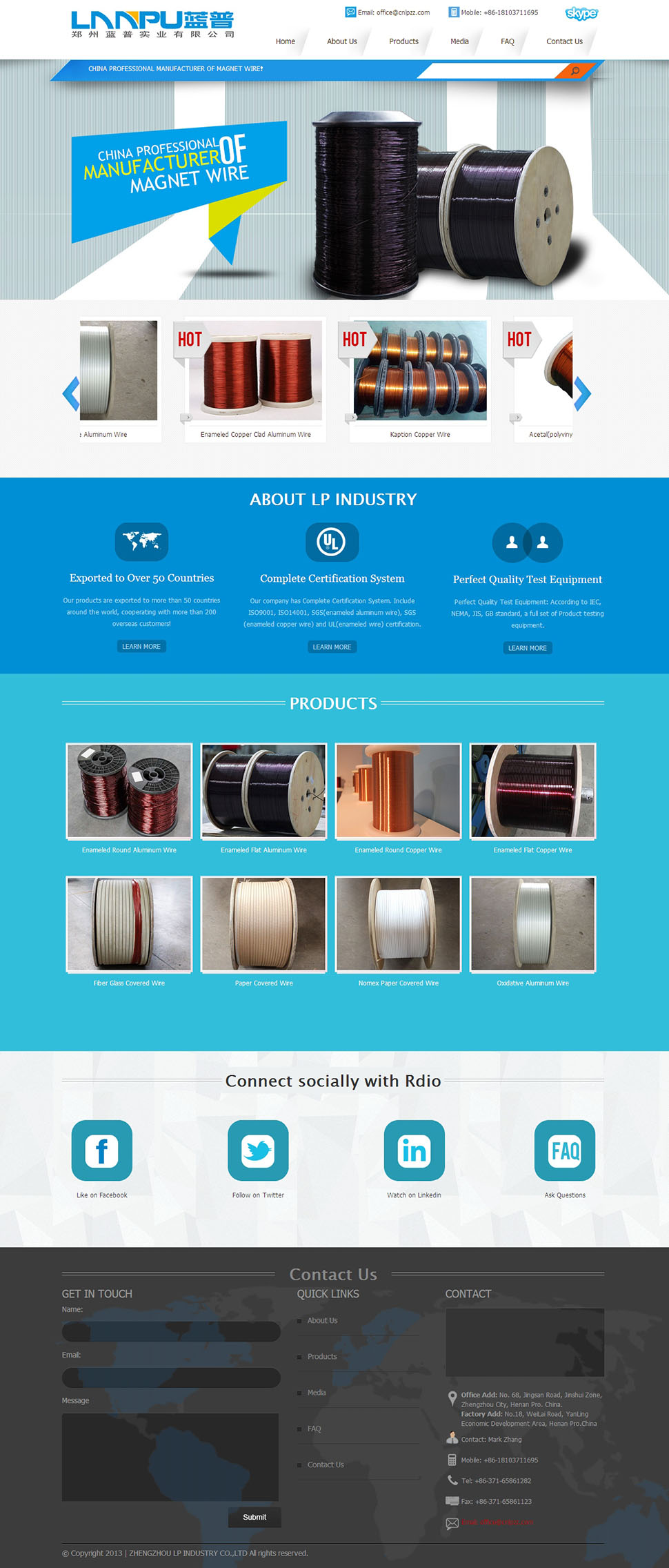 廣州市現科信息科技有限公司(現科網絡)成立于2008年,是廣州市最早從事企業網站建設及推廣服務的公司。主營業務:網站建設、企業軟件開發、H5響應式網站制作、營銷型網站、企業郵箱、微信小程序開發。業務咨詢:15915781289。Founded in 1993, Zhengzhou LP Industry Co., Ltd locates in Yanling Economic Development Zone in Henan Province with total assets RMB410 millions. The company covers an area of 100,000.00m2 with building area reach 30,000 m2. It is a modernize enterprise with 20 year professional manufacturing history.